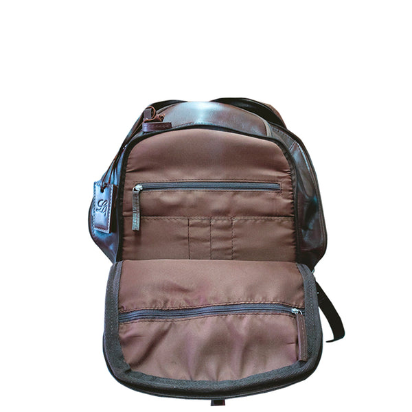 Made in a vegetable tanned oily leather , you have a backpack which can accommodate all that you want for your work place and a weekend.