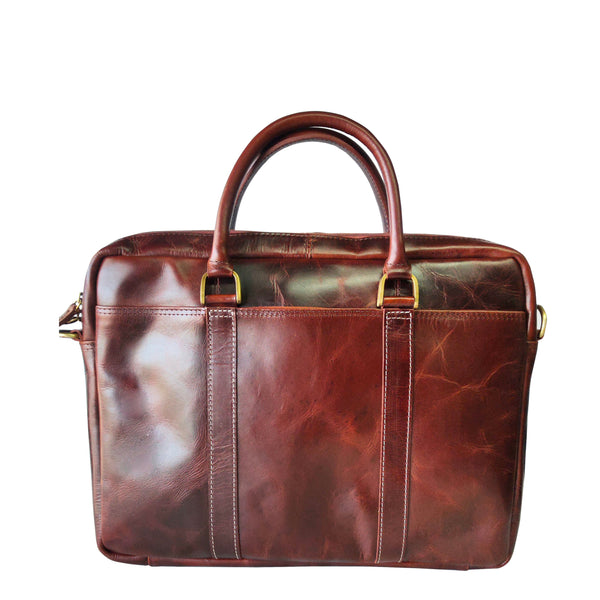 This bag is made in a beautiful burnish vegetable tanned leather .