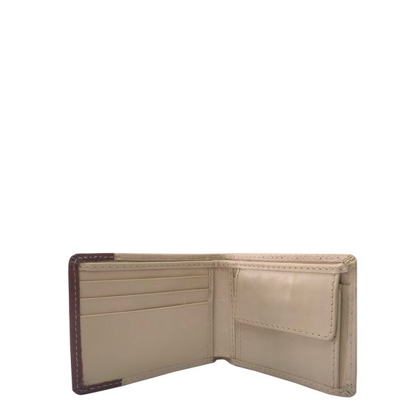 Made in a nice combination of cream and tan, this genuine leather single bifold wallet has a slimline shape which is created to slip effortlessly into your pocket and is made of genuine leather.