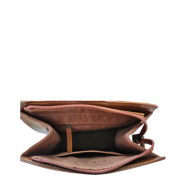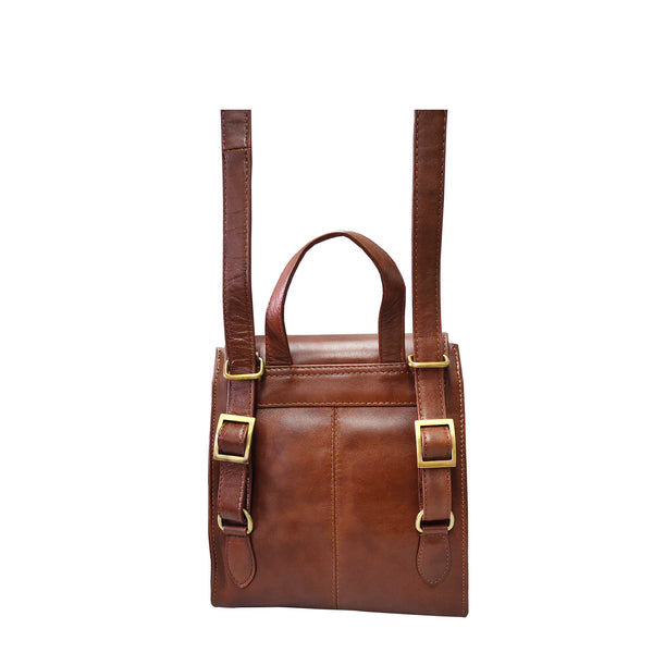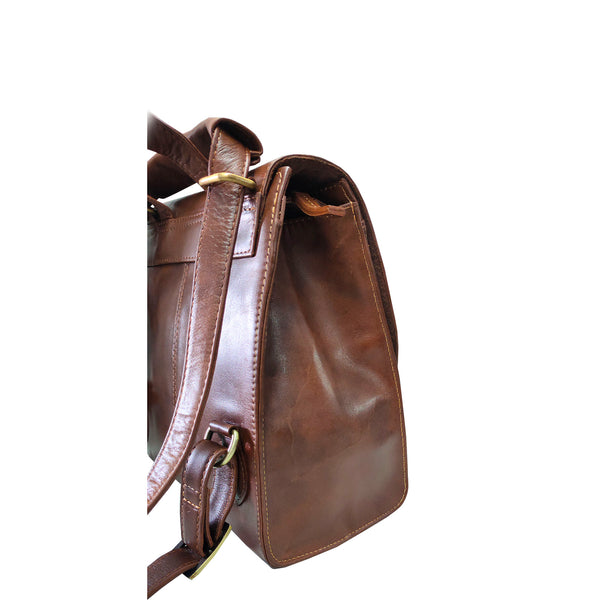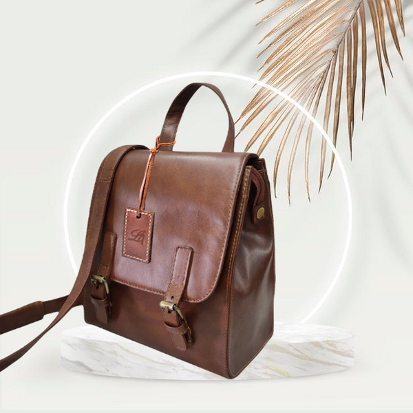 Made in vegetable tanned oily leather, this bag has a different look for a backpack which has a shoulder strap that can be adjusted to be carried as a backpack or as a cross body. Has a grab handle too. Flap opens to a compartment with zipped pocket and mobile holder. Enhances your modern look.