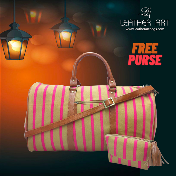 Buy this duffel bag and get a matching ladies' leather cosmetic purse free.