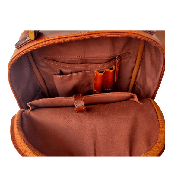This backpack is made in beautiful color combination of burnish leathers. Leather which is made with waxes and oils which gives a sheen with a nice pull up effect, so Has a big pocket outside to keep your things which needs to have immediate access and a big zipped compartment to put your 15 inch laptop, pens, mobile and some more. Comfortable shoulder straps ease the weight of your luggage.